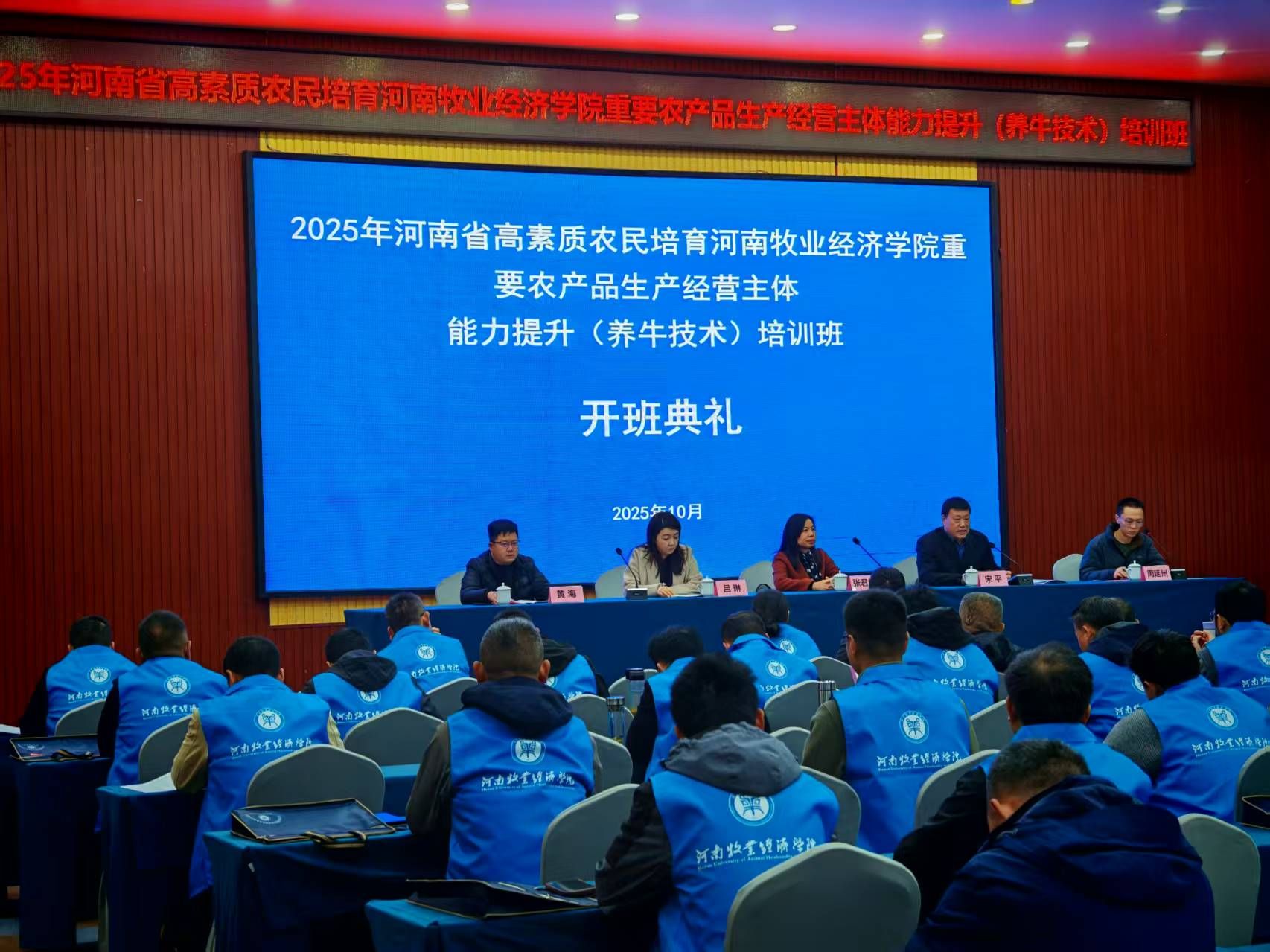 10月27日下午,由我校承办的2025年高素质农民培育(养牛技术一期)培训班开班典礼在河南现代农业研究基地报告厅举行。太阳成集团tyc33455党总支书记张君华、院长宋平、副院长周延州等相关同志及接受培训的全体学员参加了开班典礼。开班典礼由太阳成集团tyc33455副院长周延州主持。