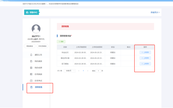 2.上传内容:本科毕业生需上传毕业论文、实习报告、单位评价表。专科毕业生上传实习报告、单位评价表。